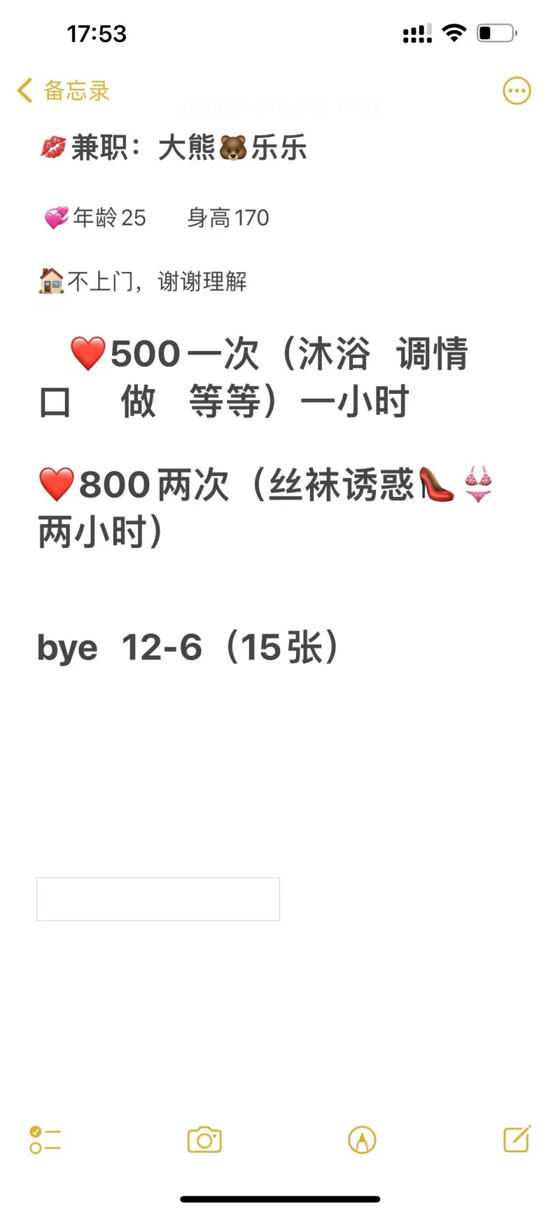 价格: 单次:500、两次:800、包夜:1500